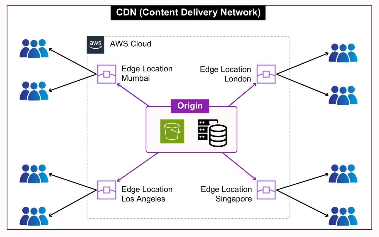 These are geographically distributed servers that cache and serve content closer to the end users. When a user in London or Mumbai requests a file, instead of reaching all the way to the origin server in the US, the request is handled by the nearest edge location.
