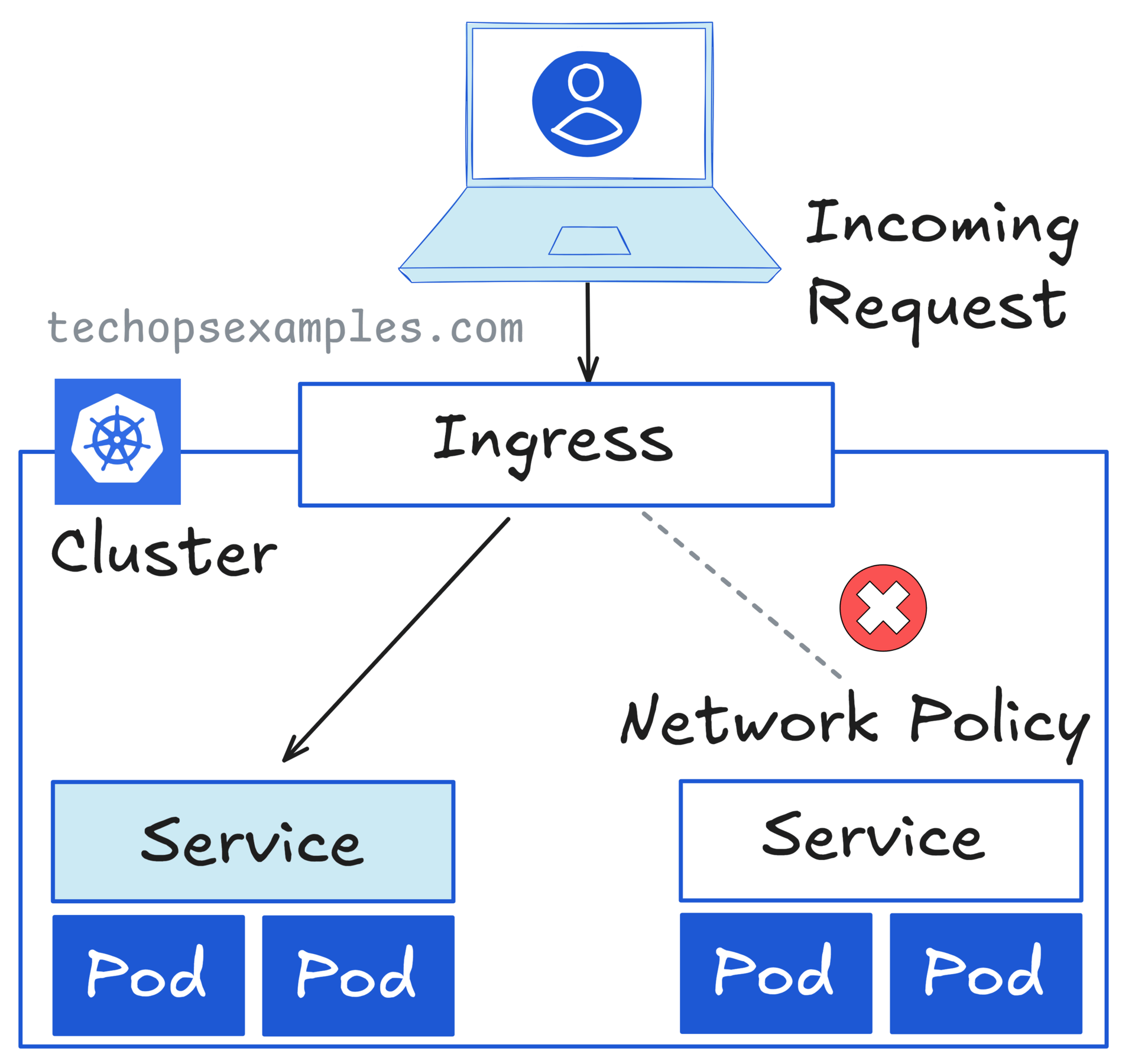 Ingress manages external HTTP and HTTPS traffic into a Kubernetes cluster. It connects requests from outside the cluster to the right service inside, works with an Ingress Controller such as NGINX, HAProxy, or Traefik.