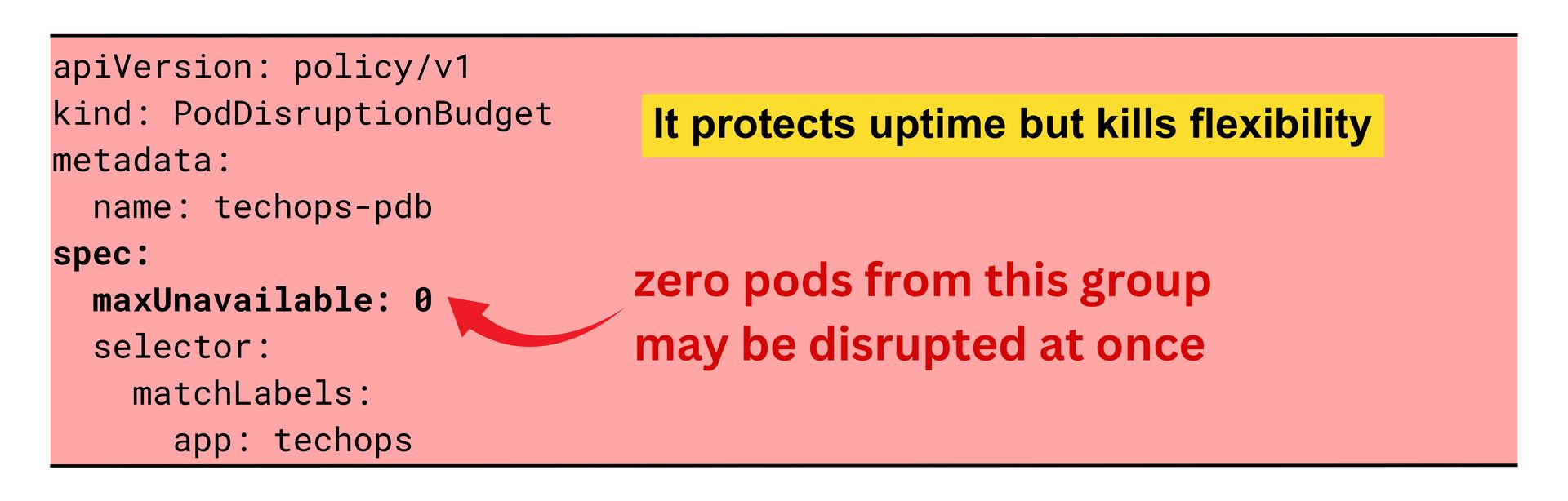 This balance keeps the application highly available but also gives Kubernetes enough flexibility to drain nodes, perform upgrades, or scale down unused capacity. It improves cost efficiency, avoids stuck operations, and lets autoscalers do their job without affecting uptime.